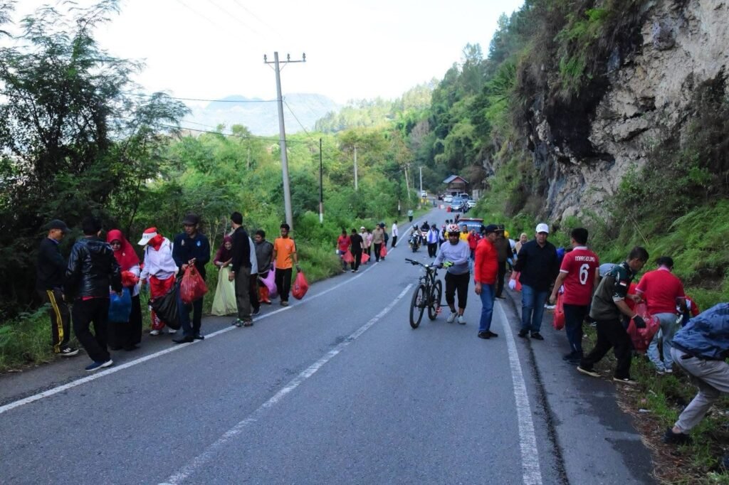 Dengan semangat kebersamaan, Bupati Haili Yoga bersama para peserta menyusuri sepanjang jalan dari Mendale hingga Anar-Anar untuk mengumpulkan sampah, terutama sampah plastik.