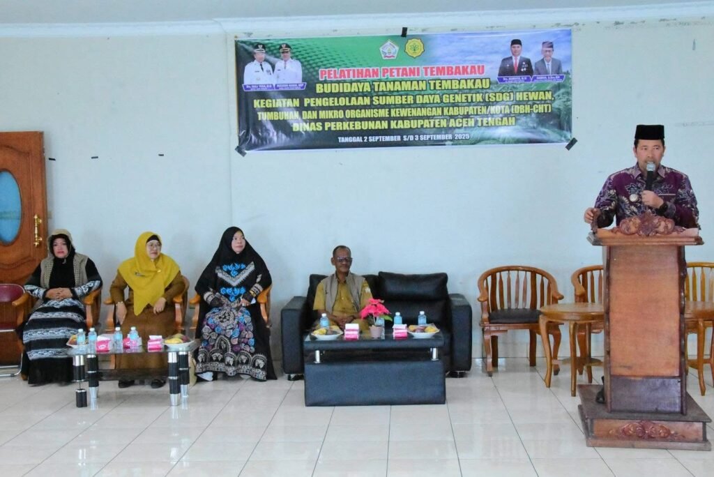 Takengon — Bupati Aceh Tengah, Haili Yoga, hari ini secara resmi membuka pelatihan budidaya dan penanganan pasca panen tanaman tembakau, pada Selasa (02/09/2025) di Aula Hotel Penemas Takengon.