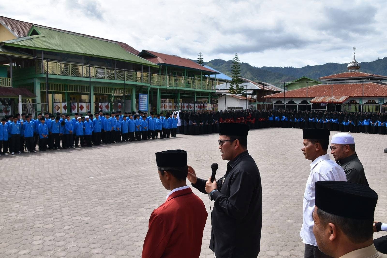Dalam kesempatan tersebut, Bupati Haili Yoga menyapa langsung dan memberikan arahan serta motivasi kepada 821 santri yang memenuhi halaman dayah.