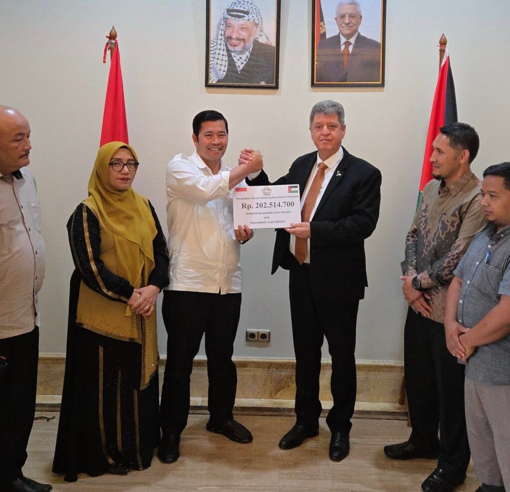 Penyerahan donasi tersebut diterima langsung oleh Duta Besar Palestina untuk Indonesia, Zuhair Al-Shun. Dalam sambutannya, Dubes Zuhair menyampaikan apresiasi tinggi atas kepedulian masyarakat Aceh Tengah dan rakyat Indonesia pada umumnya.