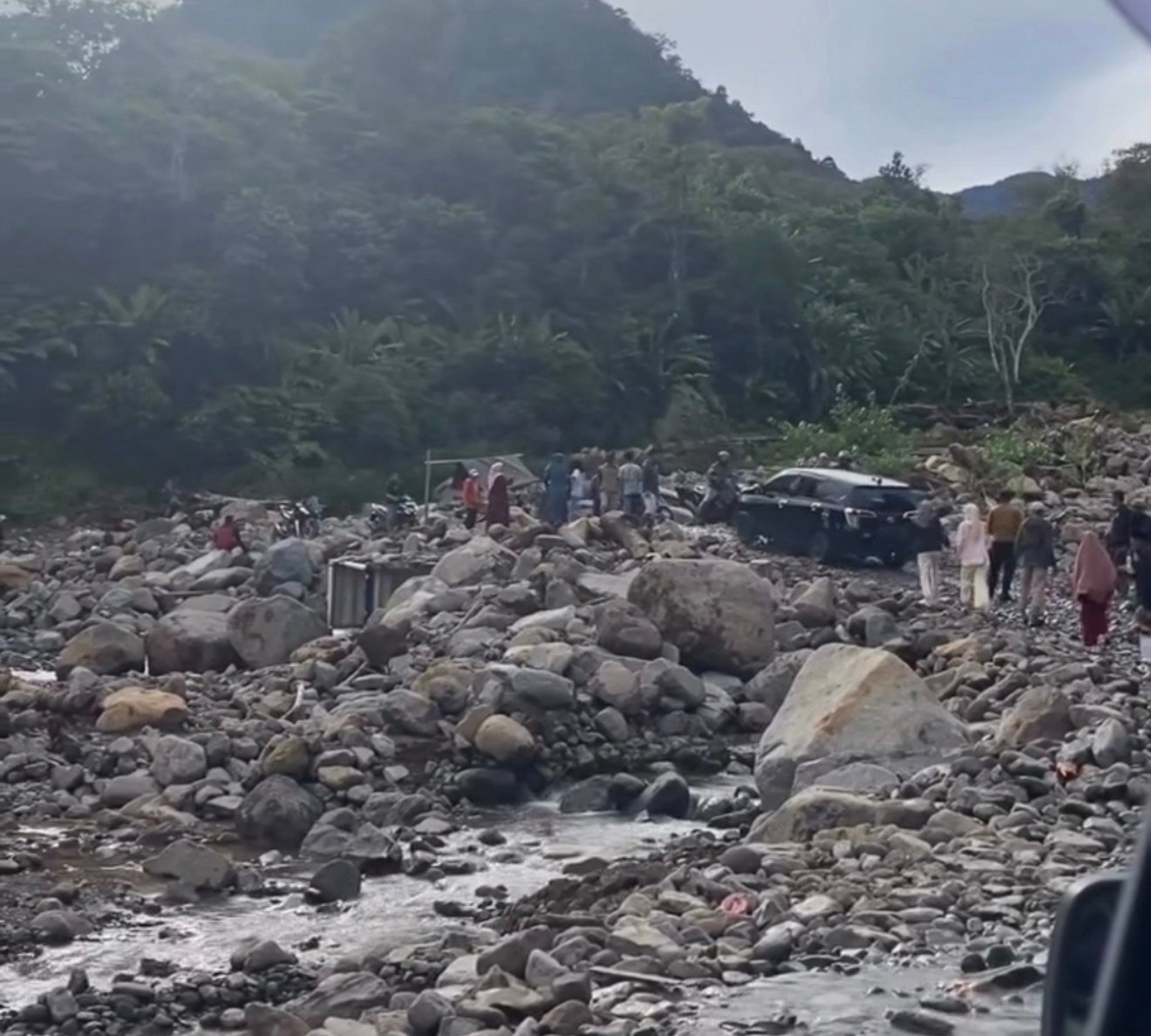 Salah satu warga, Adil, yang sempat terjebak dalam antrean panjang mengaku sudah menunggu sejak malam. “Kami terjebak hampir sembilan jam, dari malam sampai pagi dini hari. Alhamdulillah sekarang sudah bisa lewat walaupun harus pelan-pelan,” kata Adil.