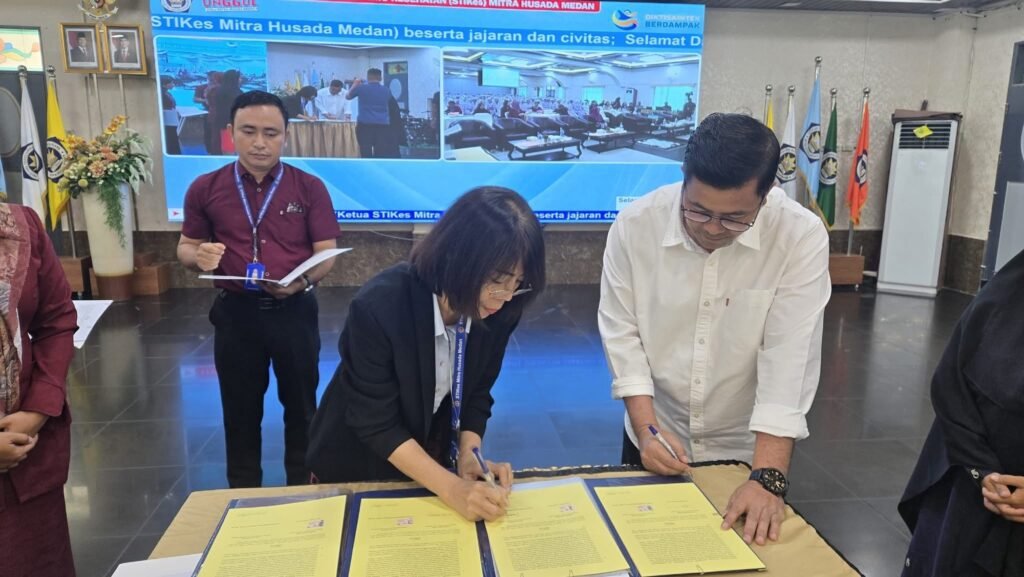 Medan – Pemerintah Kabupaten Aceh Tengah menandatangani nota kesepahaman (MoU) dengan Kampus STIKes Mitra Husada Medan dalam rangka meningkatkan kualitas sumber daya manusia (SDM) di bidang kesehatan. Penandatanganan berlangsung di Aula Pertemuan STIKes, Selasa (16/09/2025), dengan disaksikan langsung Bupati Aceh Tengah, Drs. Haili Yoga, M.Si, bersama Ketua TP PKK Aceh Tengah, Ny. Risnawati.